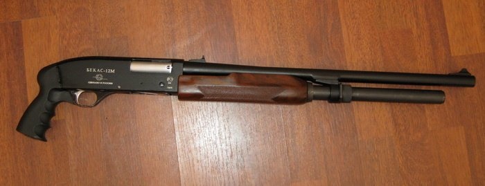 Бекас 12М" - помповое ружье, выпускаемое с 1999 года Вяческо-Полянским оружейным заводом "Молот". Простое и надежное, оно послужило основой для создания самозарядного ружья ВПО-201-05 и его более поздней модификации ВПО-201М. Он используется для охоты и самообороны.