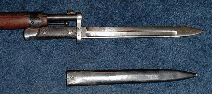 К винтовке прилагался штык. В отличие от трех пистолетов, он всегда носился отдельно, прикрепляясь к стволу только при необходимости. Это было полезно в рукопашном бою, позволяя парировать винтовку, как копье. Он закрывается на защелку и не требует дополнительной регулировки.