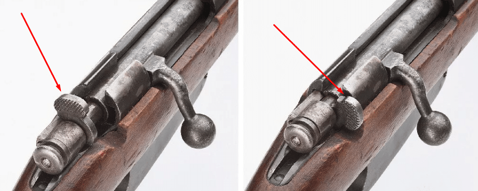 Вымпел безопасности расположен на левой стороне ствола. В поднятом состоянии он втягивает стреляющий штифт, не позволяя ему ударить по гильзе.